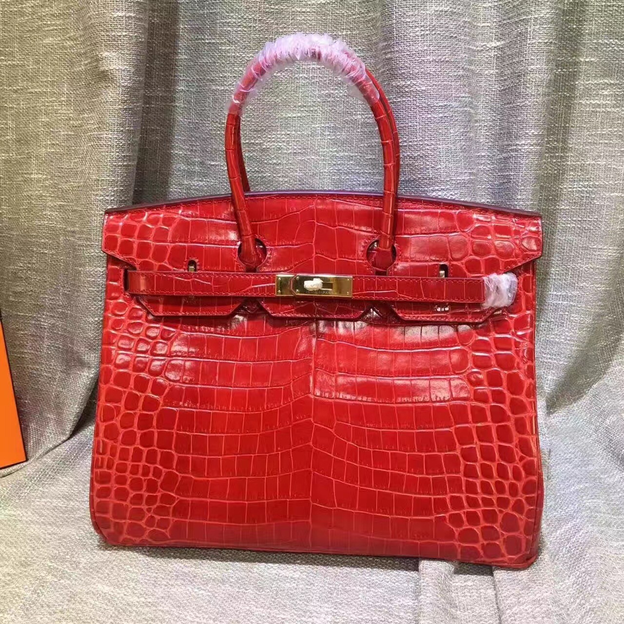 • Torebka Hermes Birkin 35 cm ze skóry krokodyla w kolorze czerwonego złota