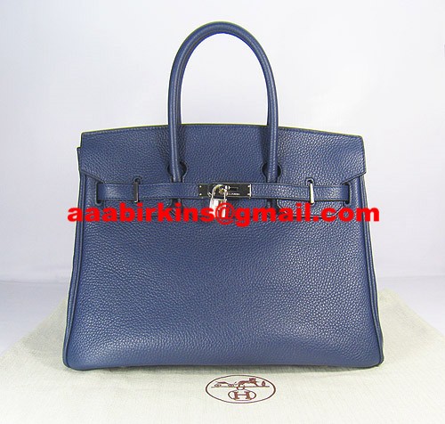 Torebka Hermes Birkin 35cm Togo, skórzana, ciemnoniebiesko-srebrna
