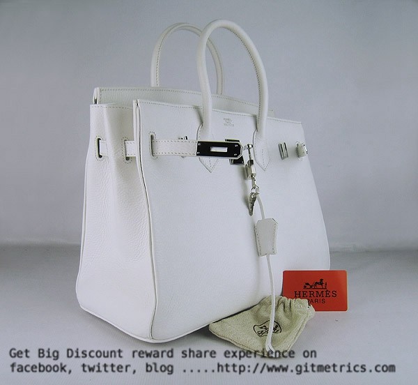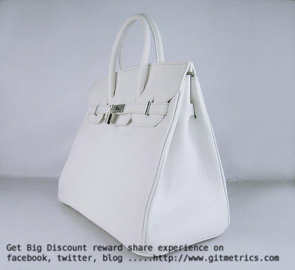 Torebki Hermes Birkin 35cm Togo skórzane białe srebrne