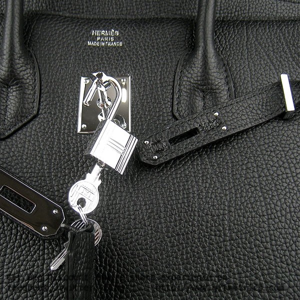 Torebka Hermes Birkin 35cm ze skóry bydlęcej, czarno-srebrna
