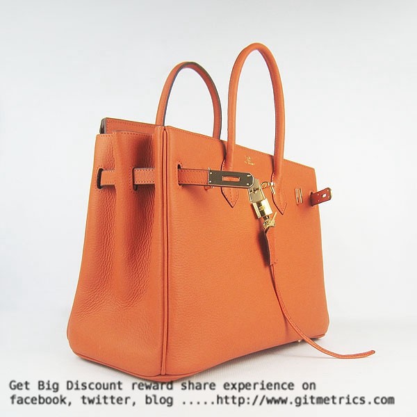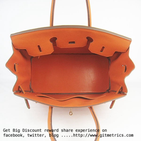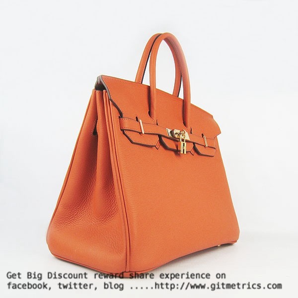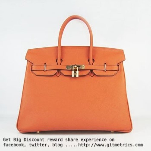 Torebka Hermes Birkin 35cm z żyłkami ze skóry bydlęcej w kolorze pomarańczowym i złotym