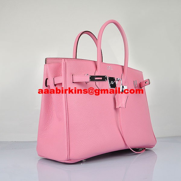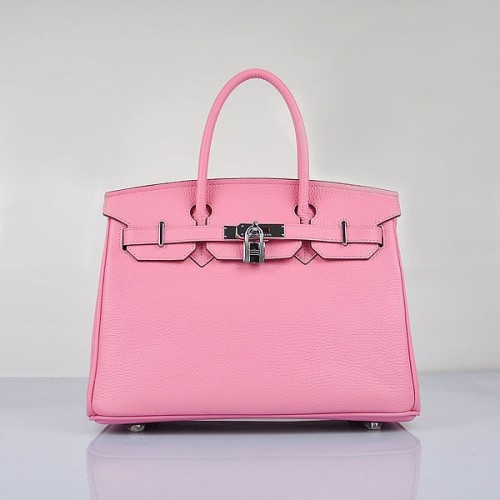 Torebka Hermes Birkin 30 cm Togo ze skóry wiśniowo-różowej w kolorze srebrnym