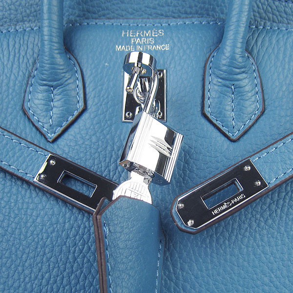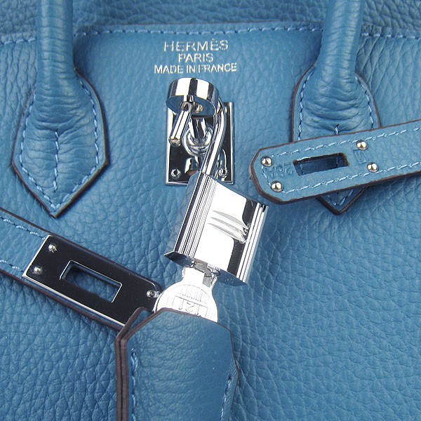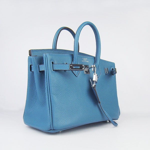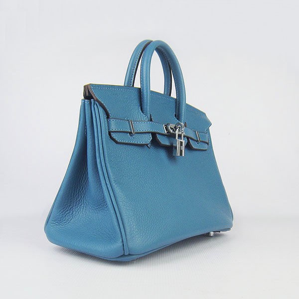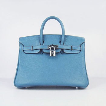 Torebka Hermes Birkin 25 cm 6068 Niebiesko-srebrna