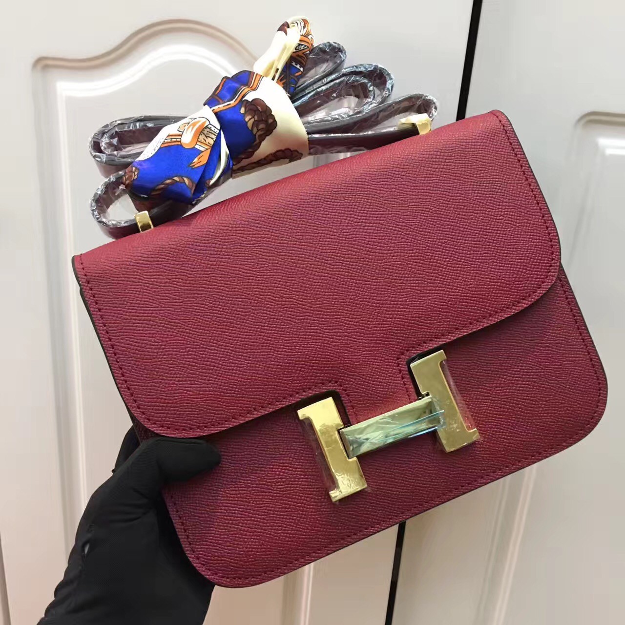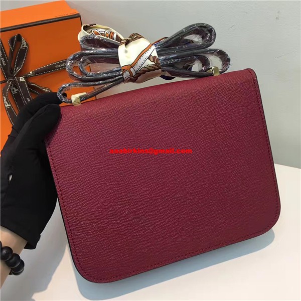 Torebka Hermes Constance 23 cm, skóra Epsom, bordowo-złota