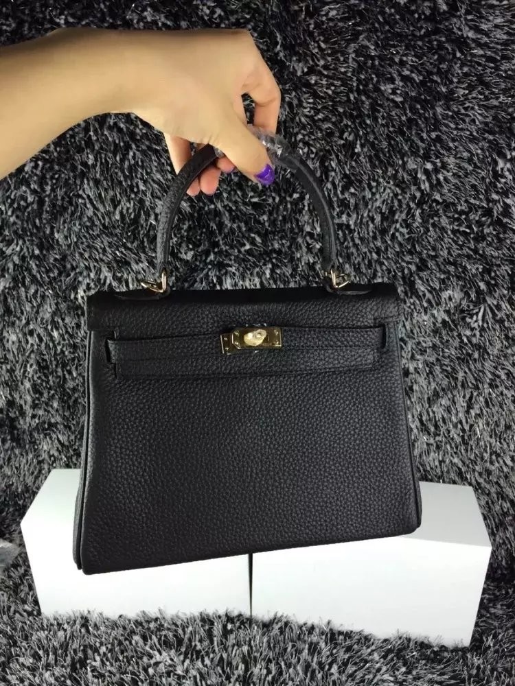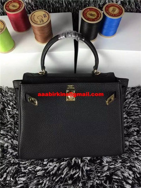 Hermes Kelly 25cm Togo Skóra Czarno-Złota