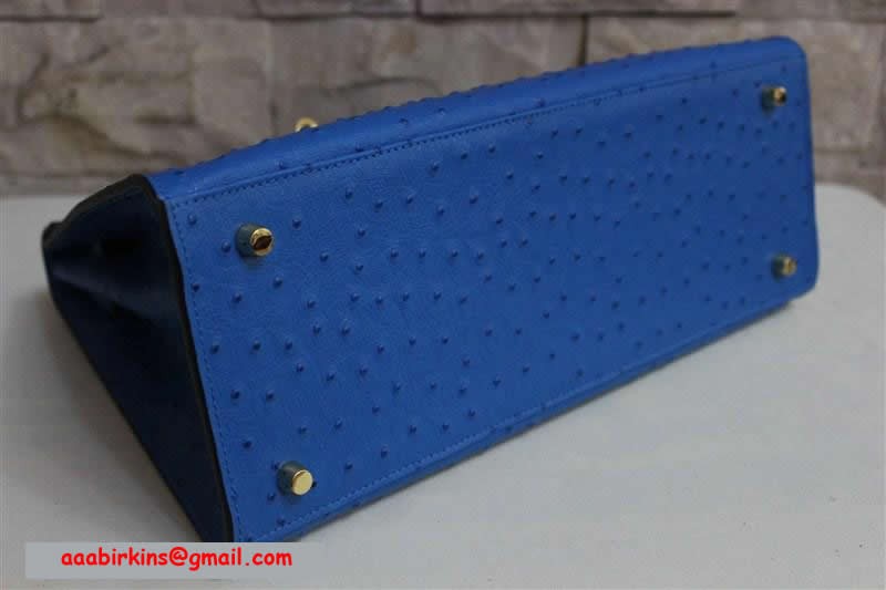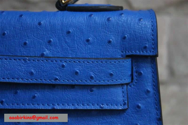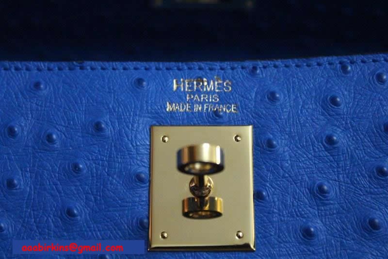 Torebka Hermes Kelly 32 cm z żyłką strusia, niebiesko-złota