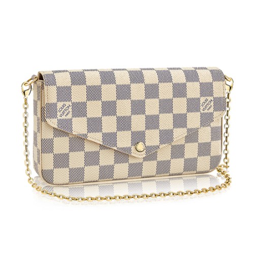 Portfel Louis Vuitton N63106 Pochette Felicie z łańcuszkiem Damier Azur Canvas
