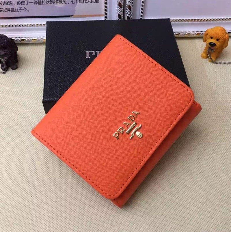 Portfele Prada 1M0176 ze skóry saffiano w kolorze pomarańczowym