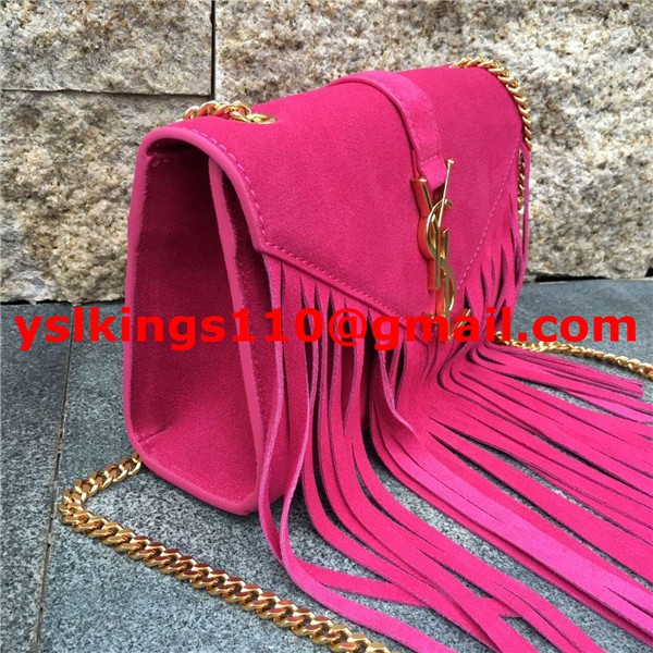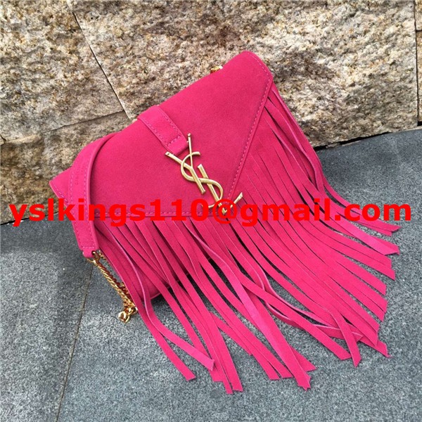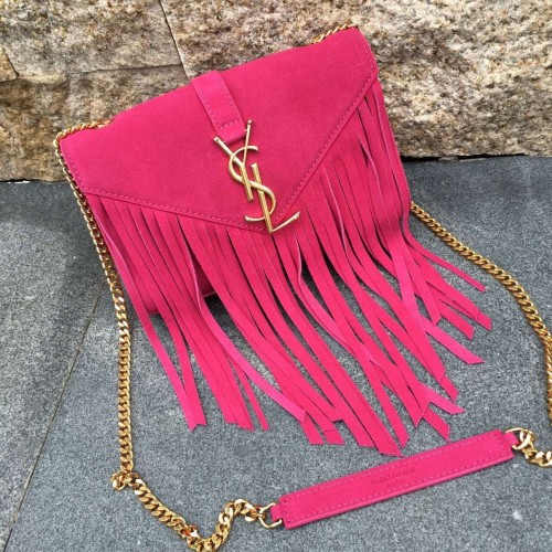 Torebka YSL z zamszu z frędzlami 22 cm w kolorze różowym