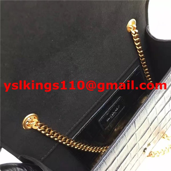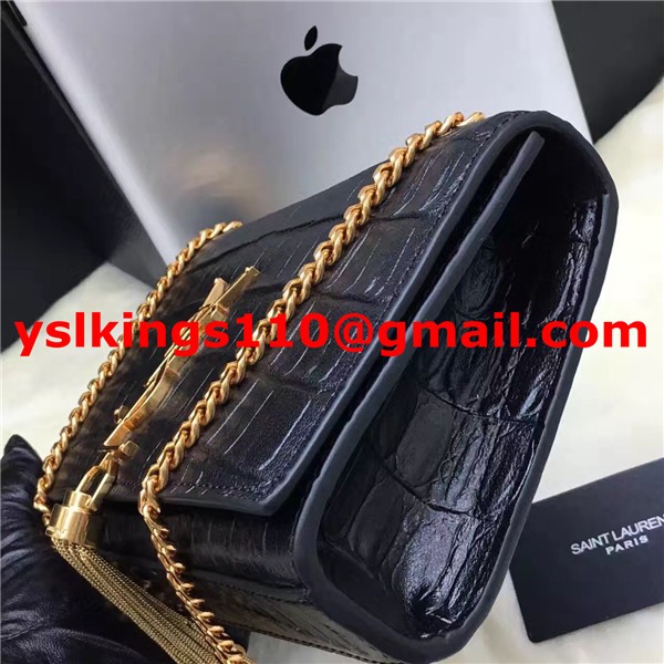 Torebka YSL z frędzlami i łańcuszkiem 22 cm, krokodyl, czarno-złoty
