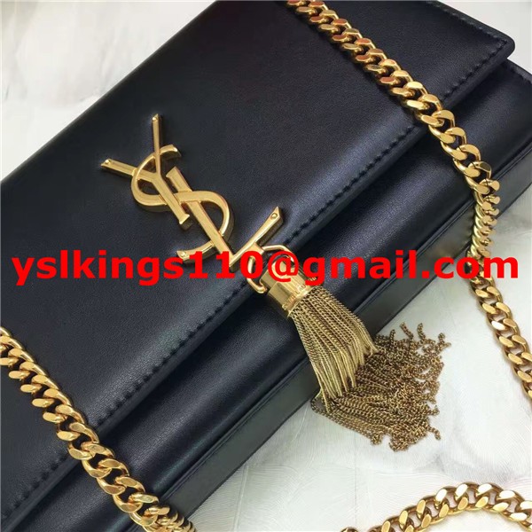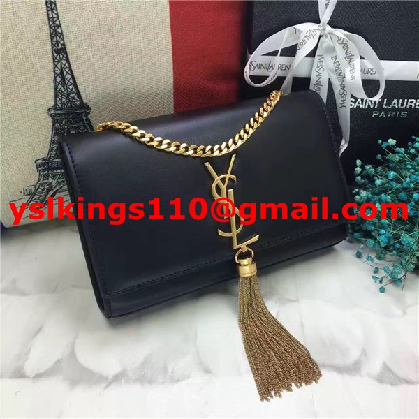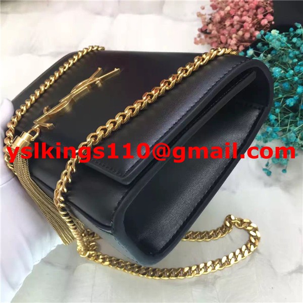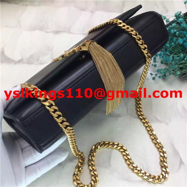 Torebka YSL z frędzlami i łańcuszkiem, 22 cm, gładka skóra, czarno-złota
