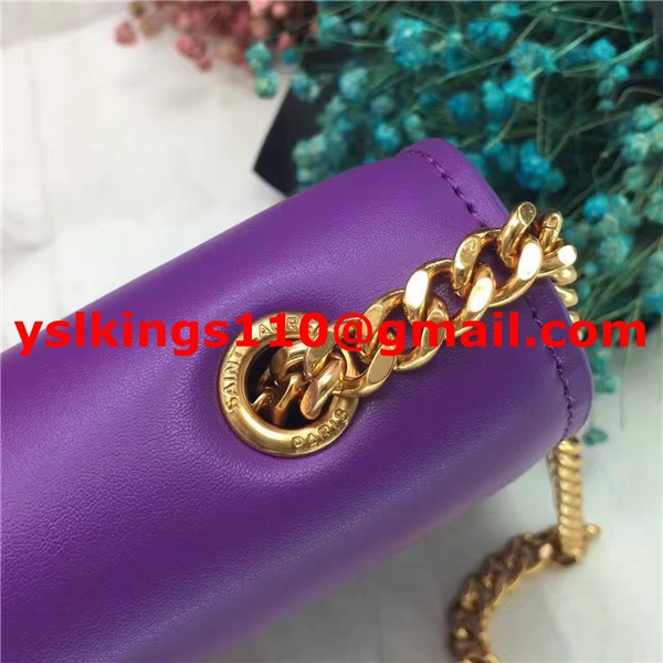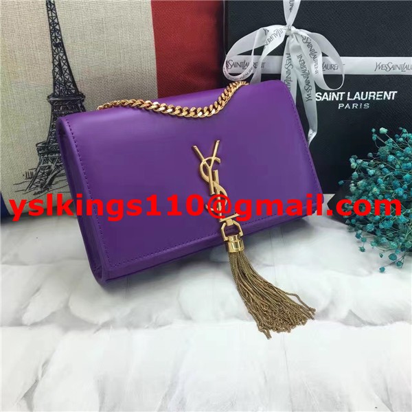 Torebka YSL z frędzlami i łańcuszkiem, 22 cm, gładka skóra, fioletowo-złota