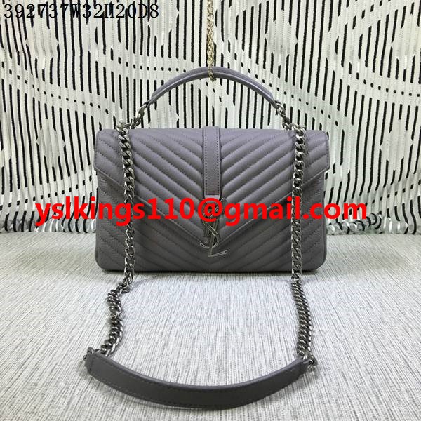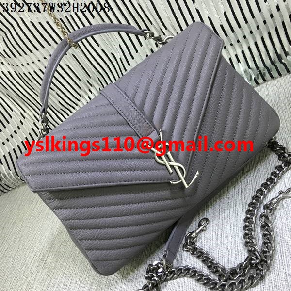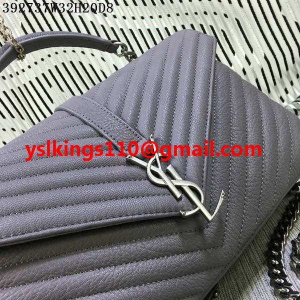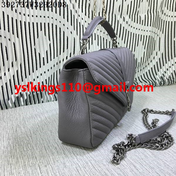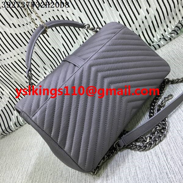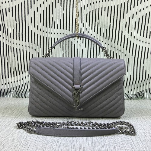 Duża torebka Saint Laurent z rączką u góry i łańcuszkiem, szara, 32 cm