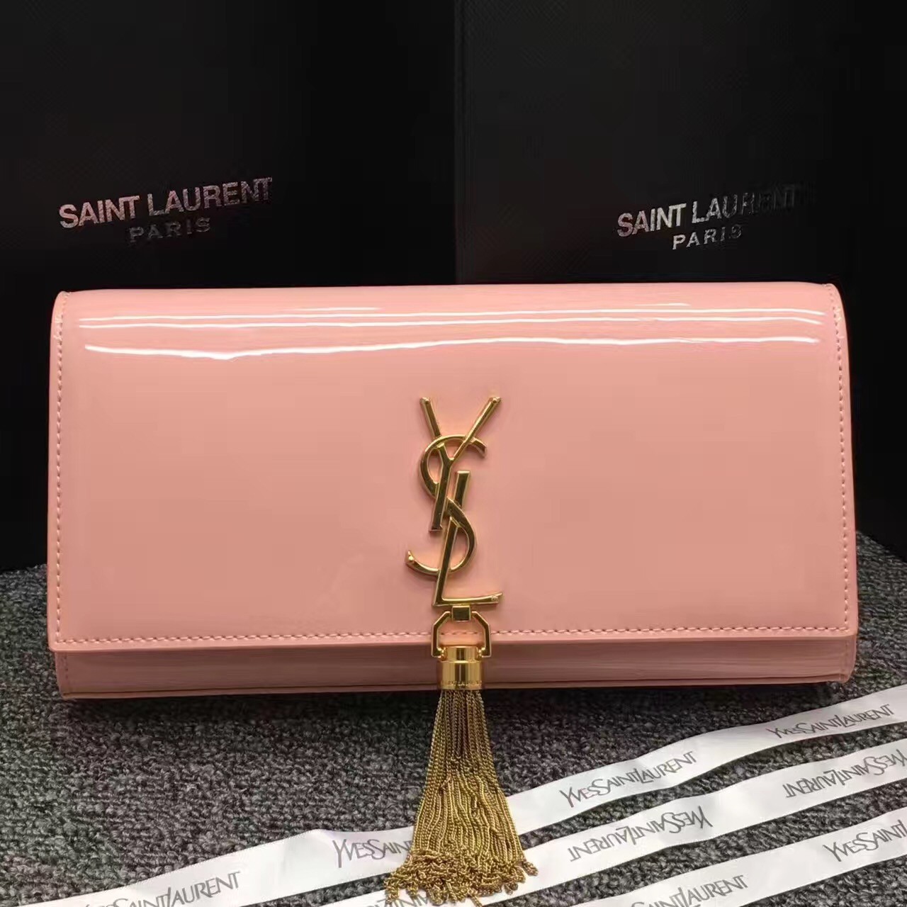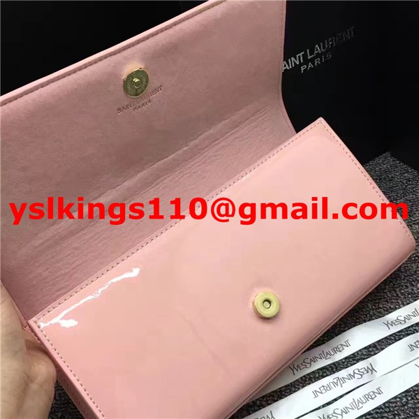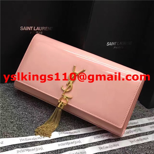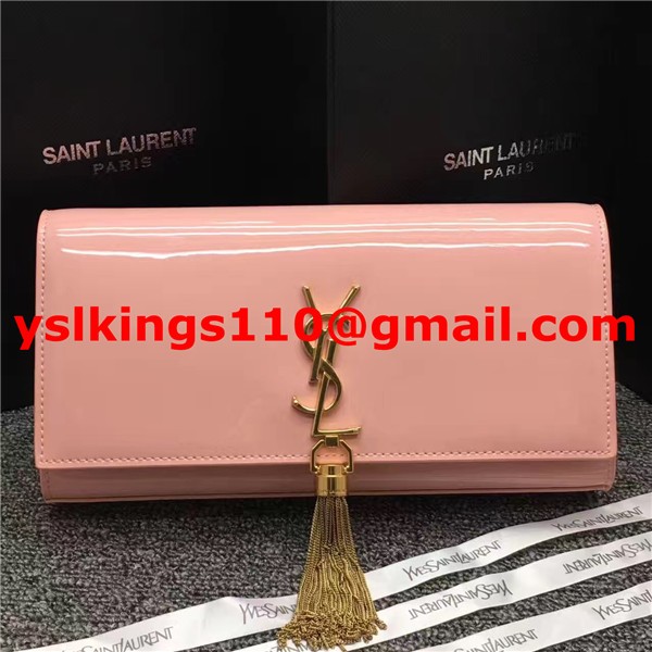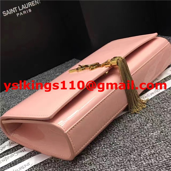 Kopertówka YSL z lakierowanej skóry z frędzlami, 27 cm, różowa
