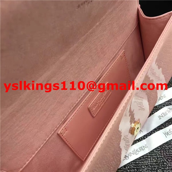 Mała kopertówka YSL z łańcuszkiem, skóra kozia, róż, 18 cm
