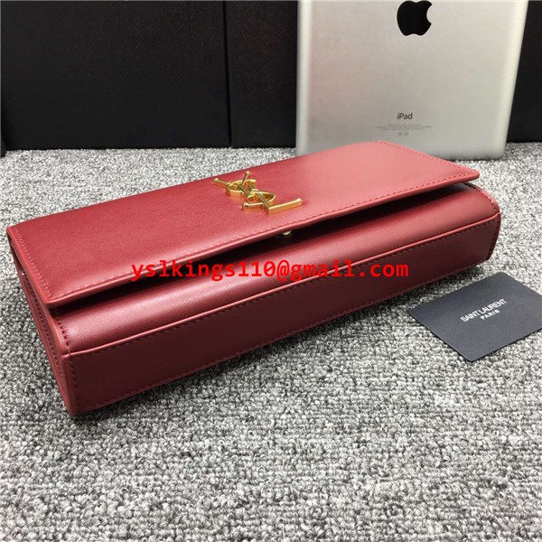 Kopertówka YSL Saint Laurent 27 cm, gładka skóra, bordowa