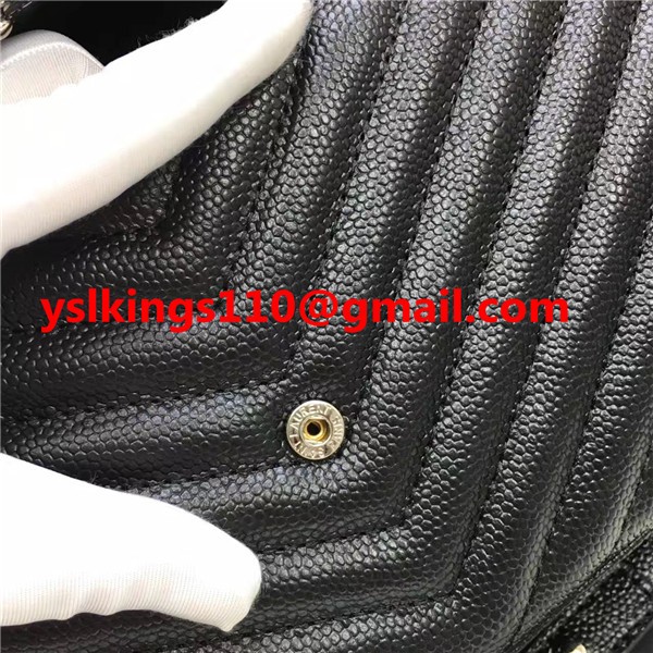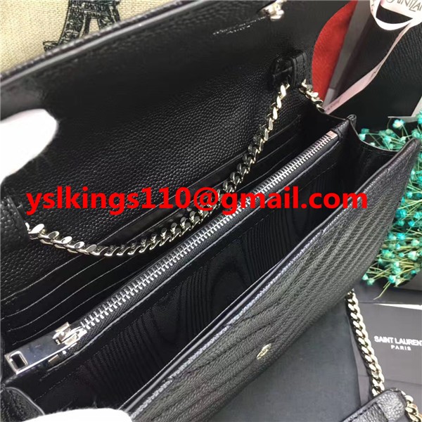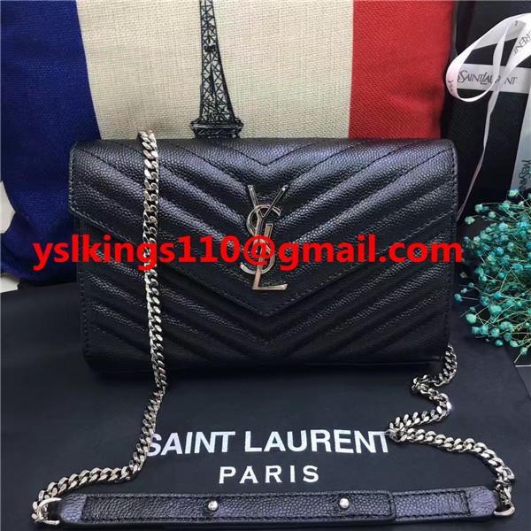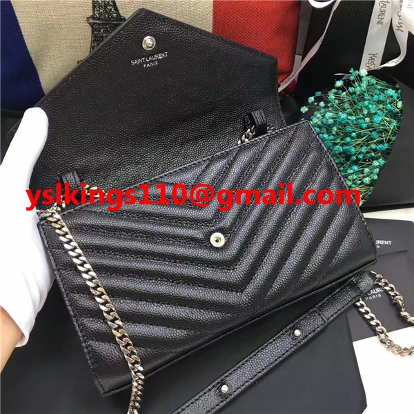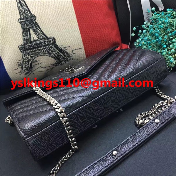 Torebka kopertowa YSL z kawiorem, skóra, czarny, srebrny, łańcuszek, 23 cm