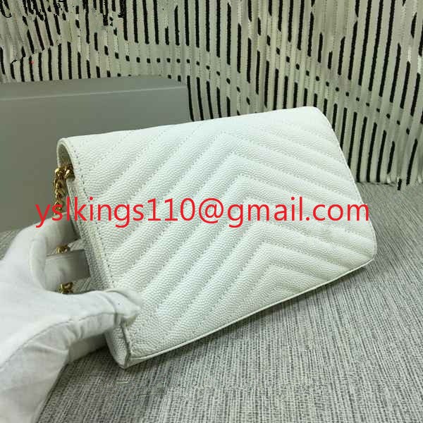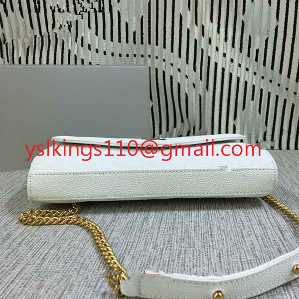 Torebka kopertówka YSL z łańcuszkiem, skóra kawiorowa, biała, 23 cm