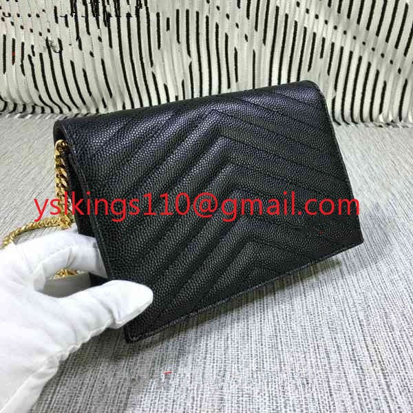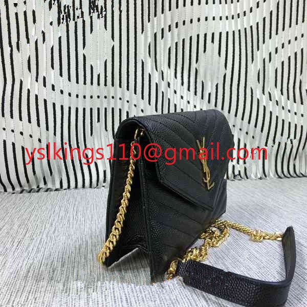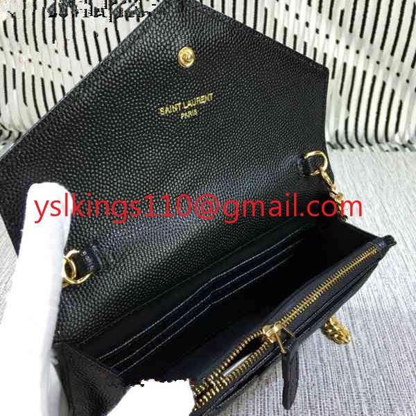 Mała kopertówka YSL z łańcuszkiem, skóra kawiorowa, czarna, 19 cm