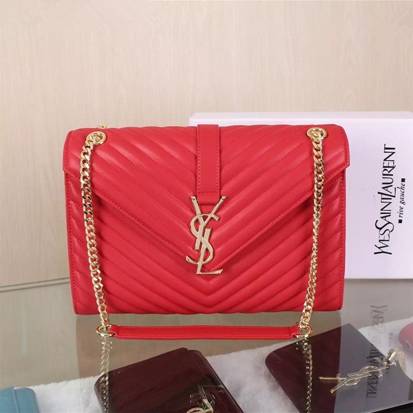 YSL Saint Laurent Klasyczna Duża Torebka z Monogramem Czerwona 31 cm