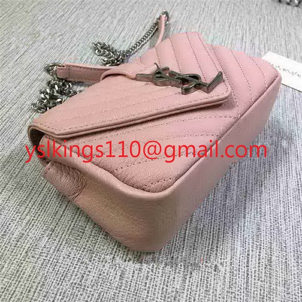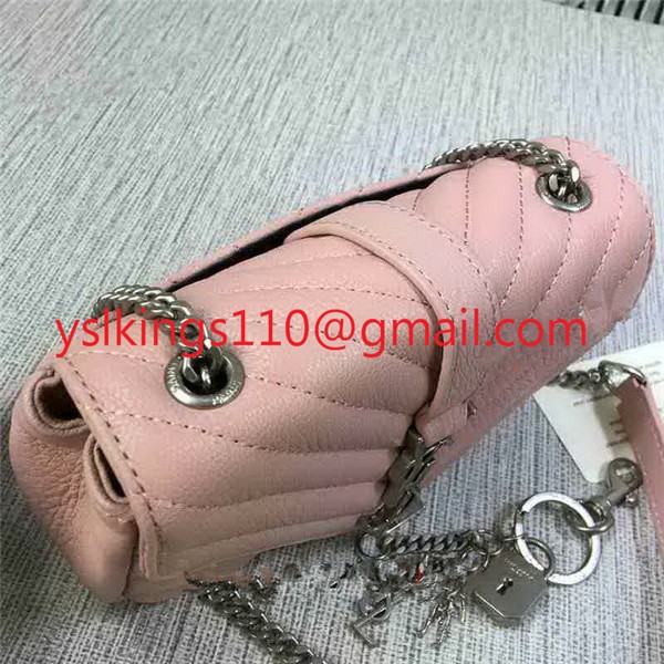 Mała kopertówka YSL z łańcuszkiem, skóra kozia, róż, 18 cm