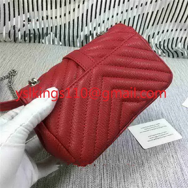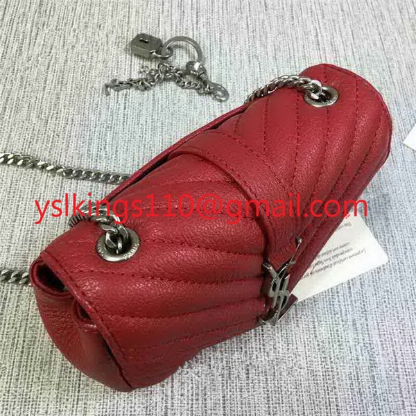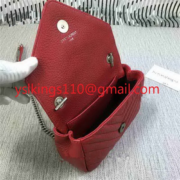 Mała kopertówka YSL z łańcuszkiem, skóra kozia, czerwona, 18 cm