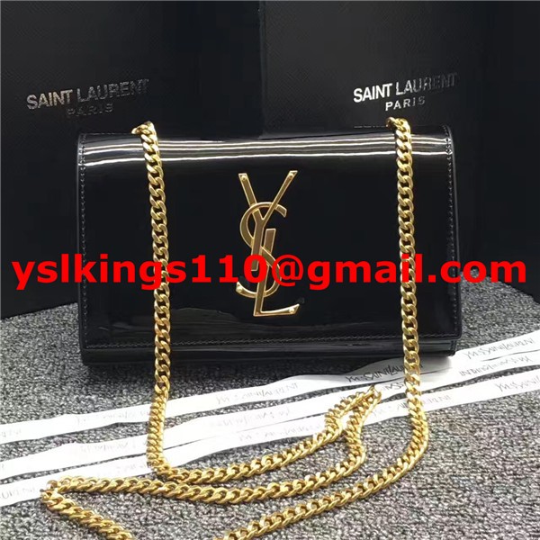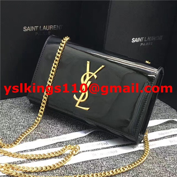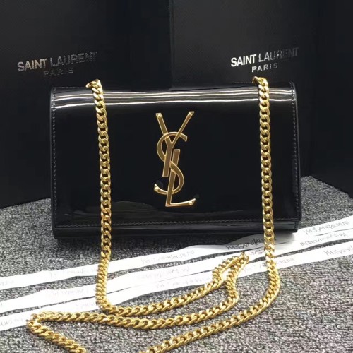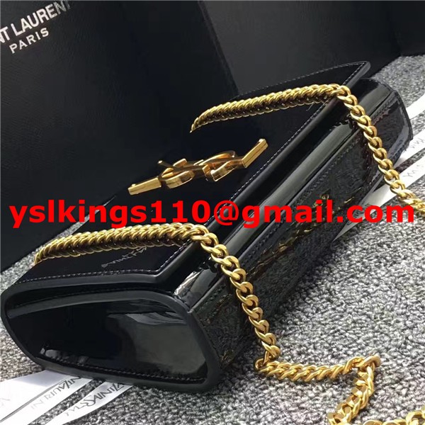 Torebka YSL z lakierowanej skóry na łańcuszku 22 cm, czarna
