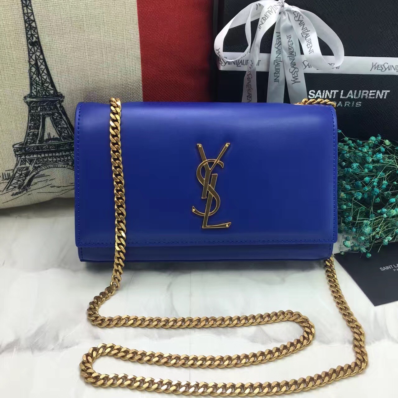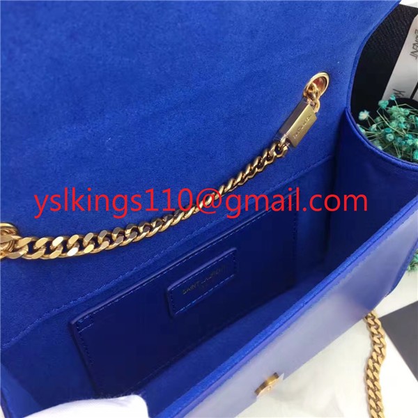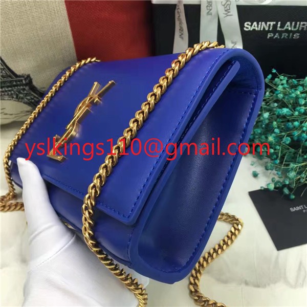 Torebka YSL z gładkiej skóry na łańcuszku 22 cm, niebieska