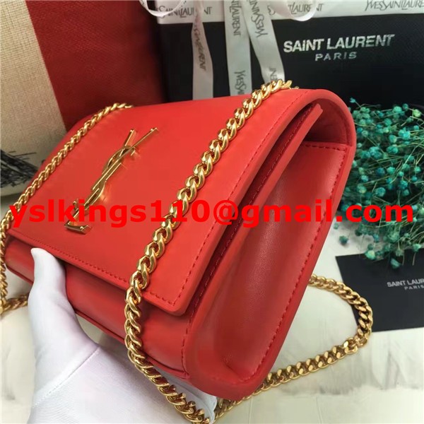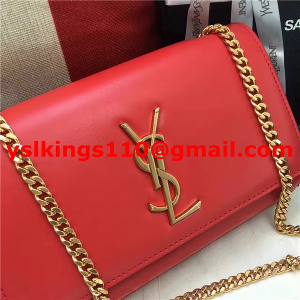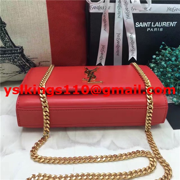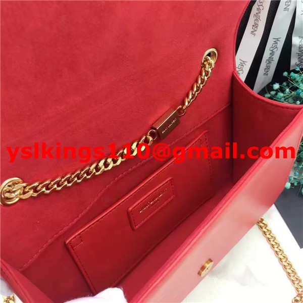 Torebka YSL z gładkiej skóry na łańcuszku 22 cm, czerwona