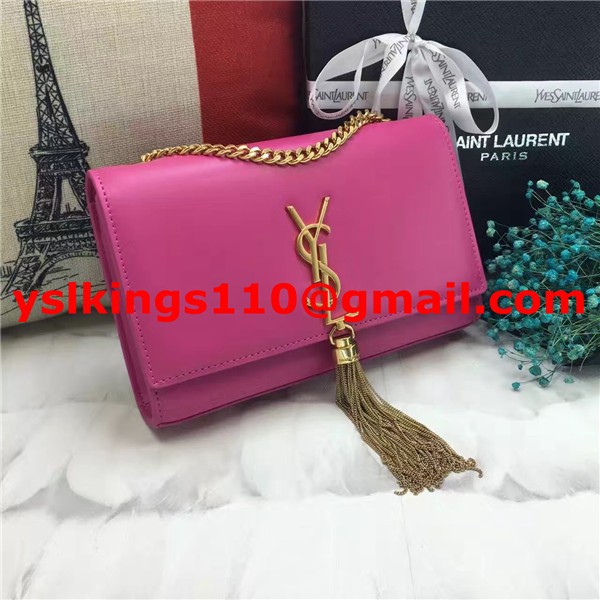 Torebka YSL z frędzlami i łańcuszkiem, 22 cm, gładka skóra, różowe złoto