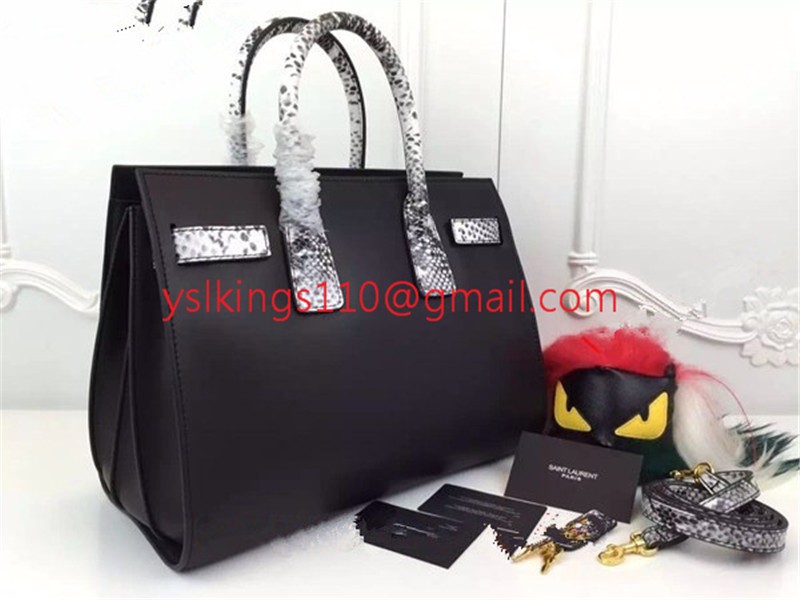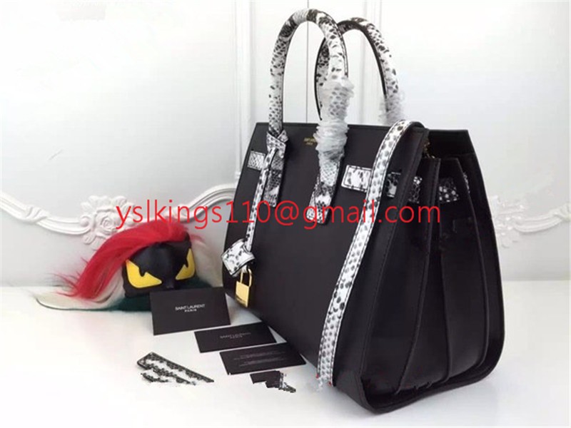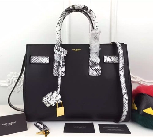 Saint Laurent Sac De Jour Tote Czarno-Biała Wąż 32 cm